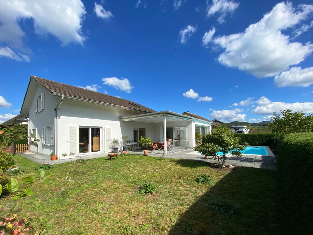 Dieses schöne 5-Zimmer-Haus bietet viel Platz und Komfort. Es befindet sich in einer ruhigen Strasse und verfügt über einen eigenen Pool, der zum Entspannen einlädt. Ideal für Familien, die ein idyllisches Zuhause suchen.